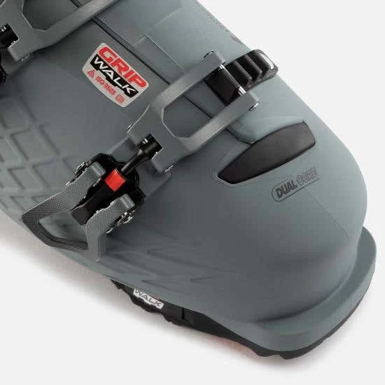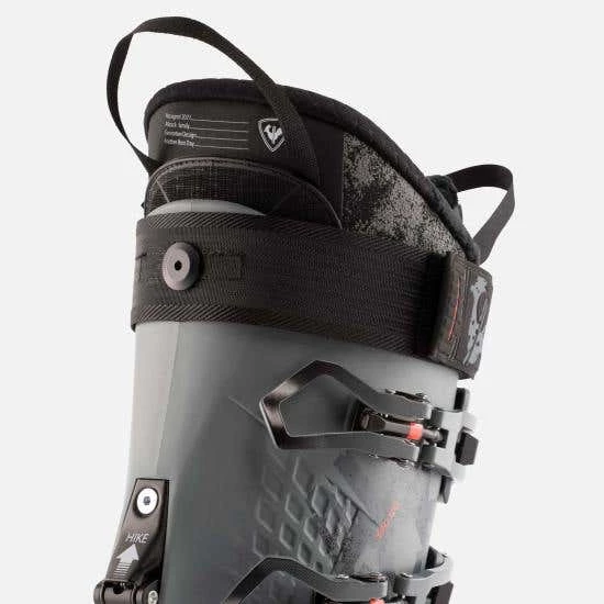 The lower boot shell is designed to offer a 50-degree range of motion in walk mode for efficient touring and maximum power for skiing when in ski mode