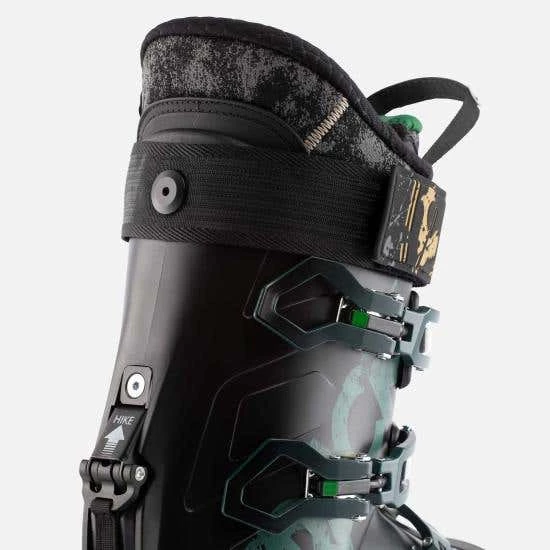 The Hike Mode lever offers ski/hike versatility by freeing the boot cuff for an increased range of motion for walking and hiking