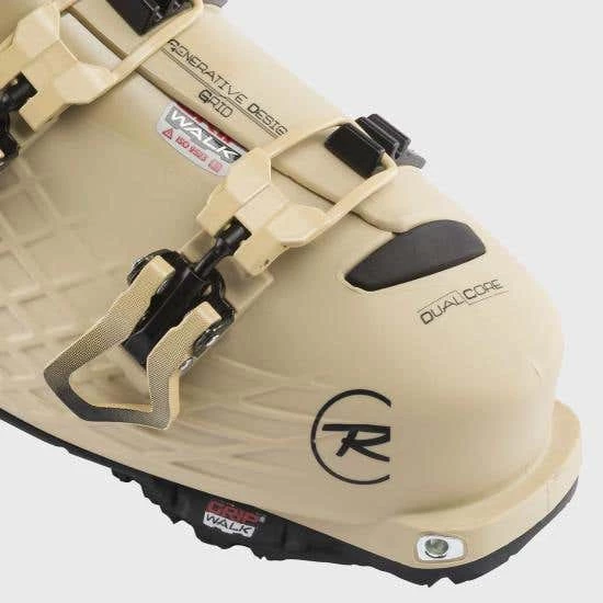 The lower boot shell is designed to offer a 50-degree range of motion in walk mode for efficient touring and maximum power for skiing when in ski mode