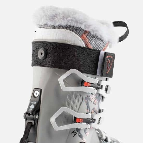 The lower boot shell is designed to offer a 50-degree range of motion in walk mode for efficient touring and maximum power for skiing when in ski mode